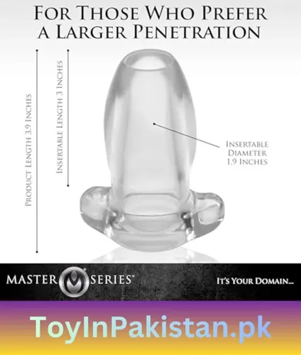 The Master Series Gape Glory Clear Hollow Plug, Large offers several unique benefits for anal play lovers in Pakistan. Its hollow design lets you explore new visual and physical sensations that a normal solid plug cannot give.
