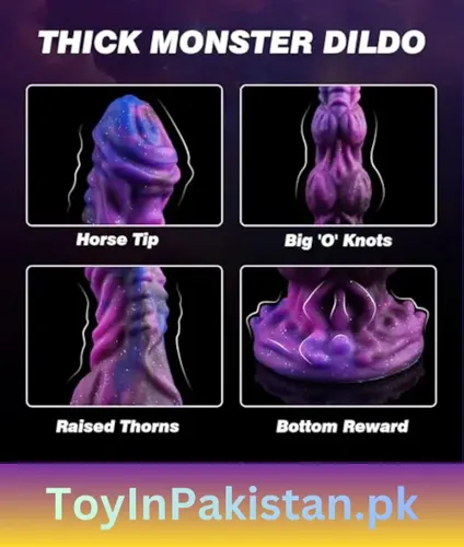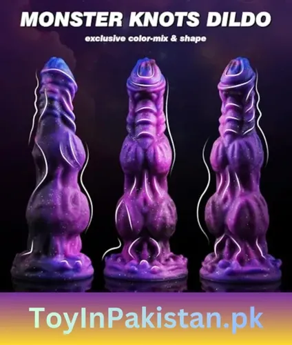 Buy Online Dildo fantasy 9.6 inch monster toy with 2 big knots, thick soft silicone, strong suction cup and unique glitter colors. Waterproof, strap-on friendly, discreet delivery in Pakistan.