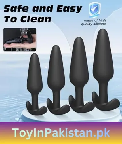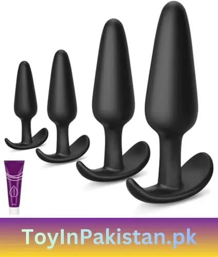 Silicone Butt Plug 4-piece set for anal training, soft medical-grade silicone, flared base, beginner to advanced sizes, waterproof, discreet delivery in Pakistan within 2–3 days, cash on delivery.